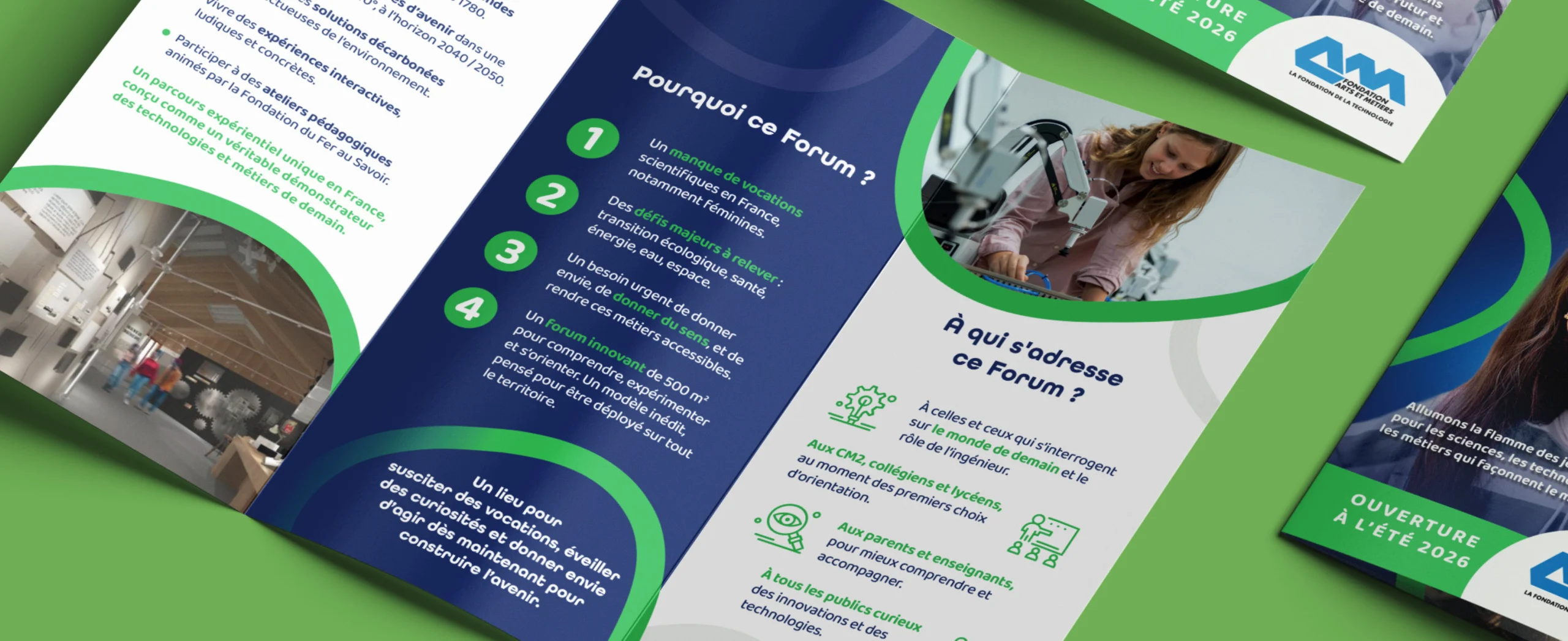 Pour accompagner le lancement et la visibilité du forum de la technologie, La Belle Semeuse a conçu et décliné l’identité sur l’ensemble des supports de communication. Dépliants, roll-up, affiches et autres outils de communication ont été pensés comme des points de contact cohérents, permettant de valoriser le projet dans l’espace public, lors d’événements et auprès des partenaires.